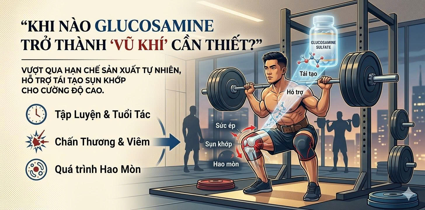 Việc tăng cường khối lượng tạ trong các buổi tập là mục tiêu của nhiều gymer, nhưng bạn đã bao giờ dừng lại để nghĩ về sức khỏe "chiến binh" thầm lặng của mình – chính là sụn khớp chưa? Âm thanh "rắc rắc" mỗi khi cử động có thể là lời cảnh báo sớm mà chúng ta thường bỏ qua. Vậy khi nào thì glucosamine thực sự cần thiết để bảo vệ "hàng rào" này?