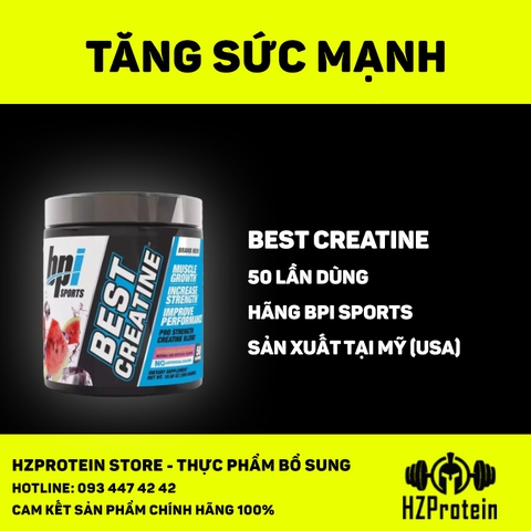 - Dòng sản phẩm chuyên dụng dành cho gymer , BPI BEST CREATINE sử dụng công thức chuyên dụng từ 6 dạng creatine khác nhau , giúp cho cơ thể bạn thúc đẩy phát triển cơ bắp và tăng cường sức mạnh, hiệu suất tập luyện và phục hồi thể lực trong buổi tập được diễn ra hiệu quả nhất .