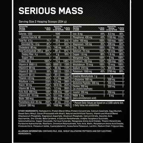 Serious Mass là dòng sữa tăng cân nổi tiếng và bán chạy nhất thể giới với đã hơn 30 năm phát triển trên toàn cầu. Optinum Serious Mass có thể nói luôn là sự lựa chọn giành cho người có nhu cầu tăng cân và tăng cơ nhanh. Sản phẩm được sản xuất theo dây chuyền hiện đại để đáp ứng nhu cầu cấp thiết về việc tăng cân.