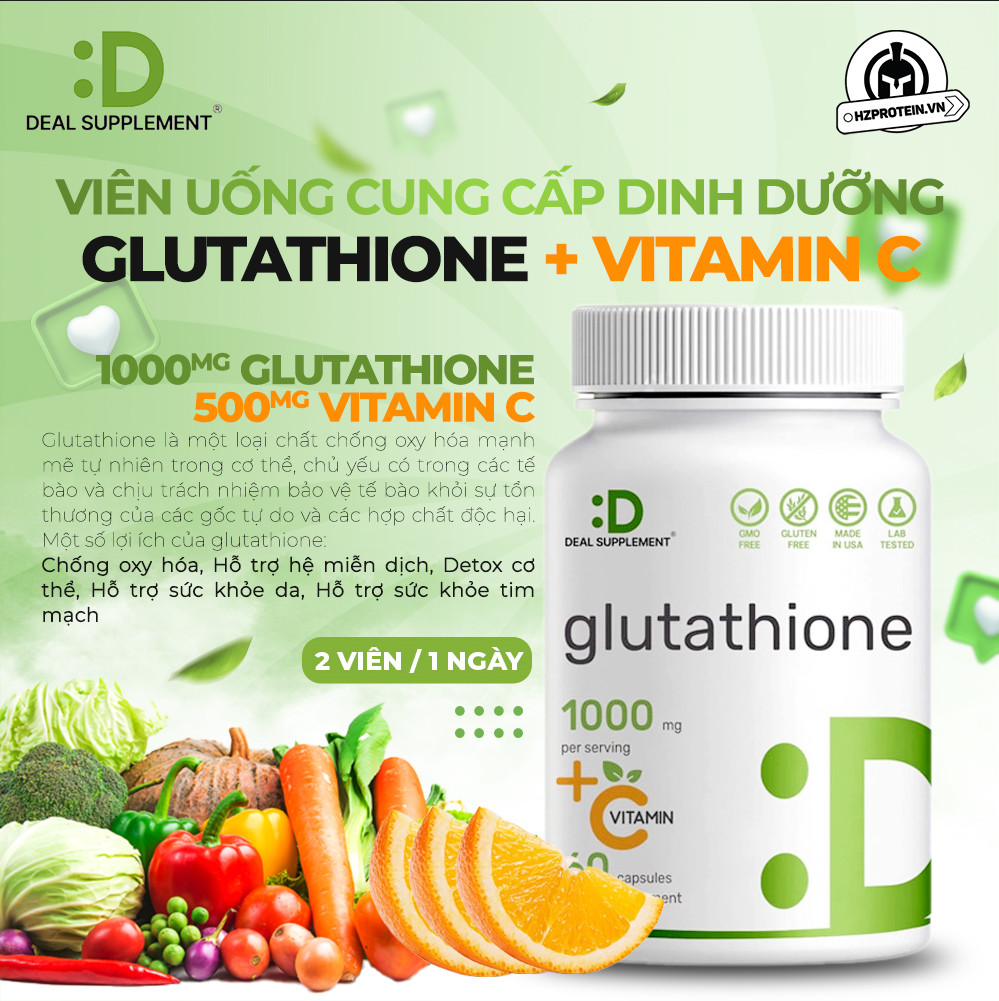 Ưu Điểm của Deal Supplement Glutathione Reduced 1000mg + Vitamin C (60 Viên):