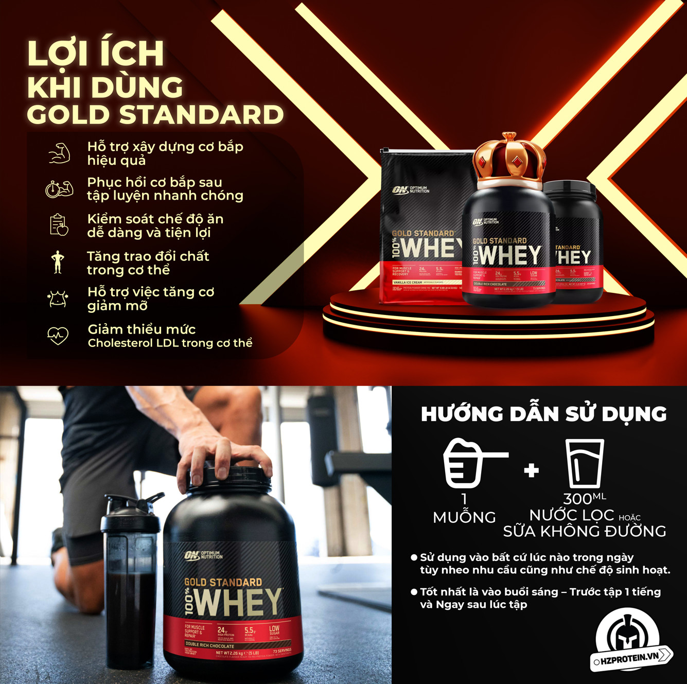 Đã từ rất lâu, Whey Gold Standard đã là TIÊU CHUẨN VÀNG để phục vụ cho nhu cầu tăng cơ giảm mỡ của rất nhiều người. Không chỉ nói với những ai đang tập thể hình mà kể cả đối với những người đang muốn tìm một nguồn đạm (Whey Protein) để cung cấp dinh dưỡng cho cơ thể đều sẽ chọn lựa đến Whey Gold Standard đầu tiên.