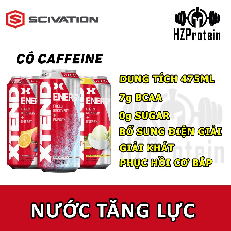 NƯỚC UỐNG XTEND BCAA DẠNG LON CÓ BỔ SUNG THÊM CAFFEINE GIÚP BẠN TỈNH TÁO, TẬP TRUNG TRONG KHI CHƠI THỂ THAO,GYM