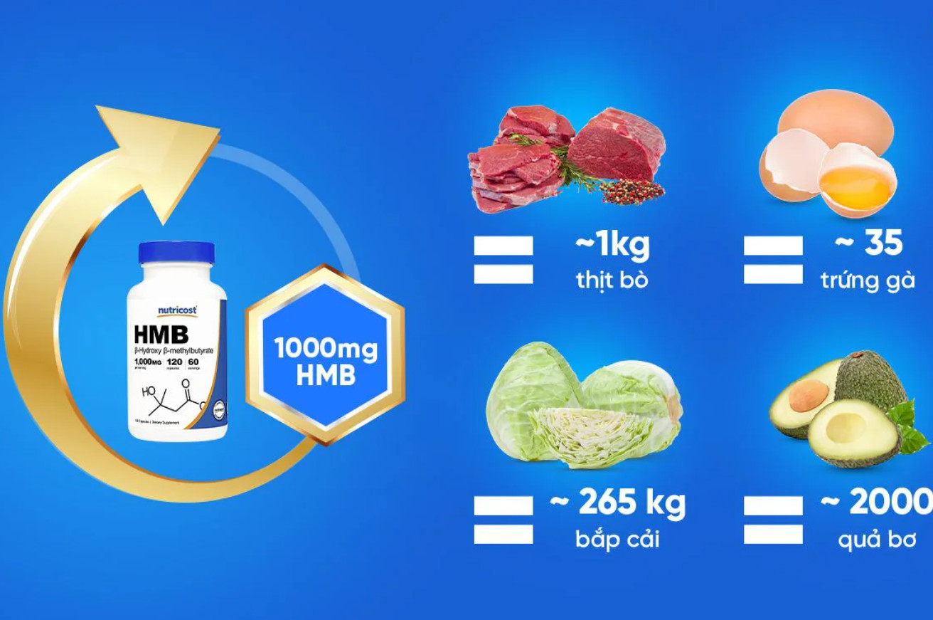 HMB có trong nhiều loại thực phẩm chúng ta ăn hàng ngày, tuy nhiên hàm lượng là rất ít. Để có được 1000mg HMB, bạn phải ăn khoảng 35 quả trứng gà hoặc 1kg thịt bò. Do đó, sử dụng các thực phẩm bổ sung như Nutricost HMB sẽ là giải pháp tối ưu để cung cấp đầy đủ HMB cho cơ thể.