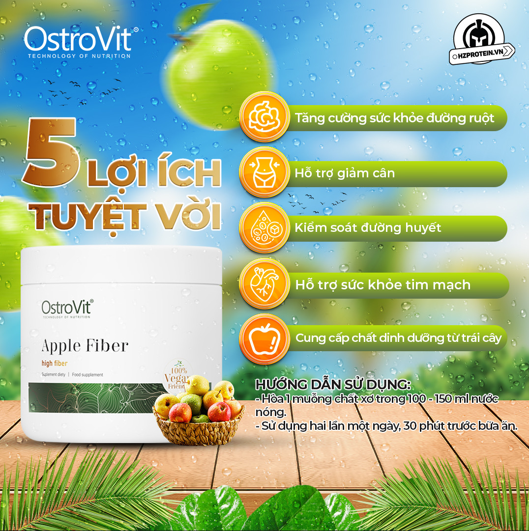 Ostrovit Apple Fiber là sản phẩm bổ sung chất xơ chọn lọc từ sợi táo nguyên chất, hỗ trợ giảm cân, cải thiện hệ tiêu hoá, giảm cholesterol có hại, mang tới nhiều lợi ích tuyệt vời cho sức khoẻ. Ostrovit Apple Fiber được nghiên cứu và sản xuất từ thương hiệu Ostrovit – nhập khẩu Ba Lan.