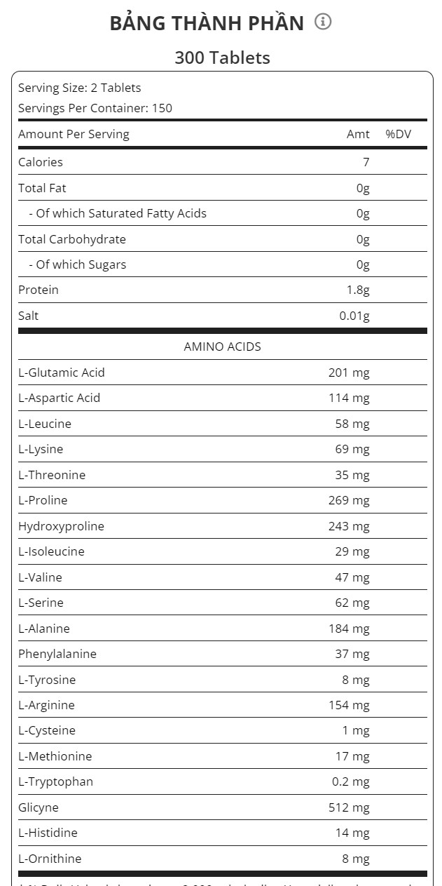 BẢNG THÀNH PHẦN SUPPLEMENT FACT