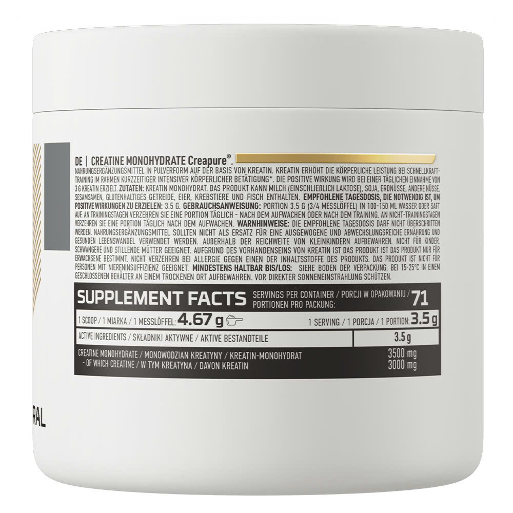 - OstroVit Creatine Monohydrate Creapure 300g được sản xuất từ Creatine nguyên chất nhằm tối ưu hóa khả năng sản sinh năng lượng và cấp nước cho tế bào.