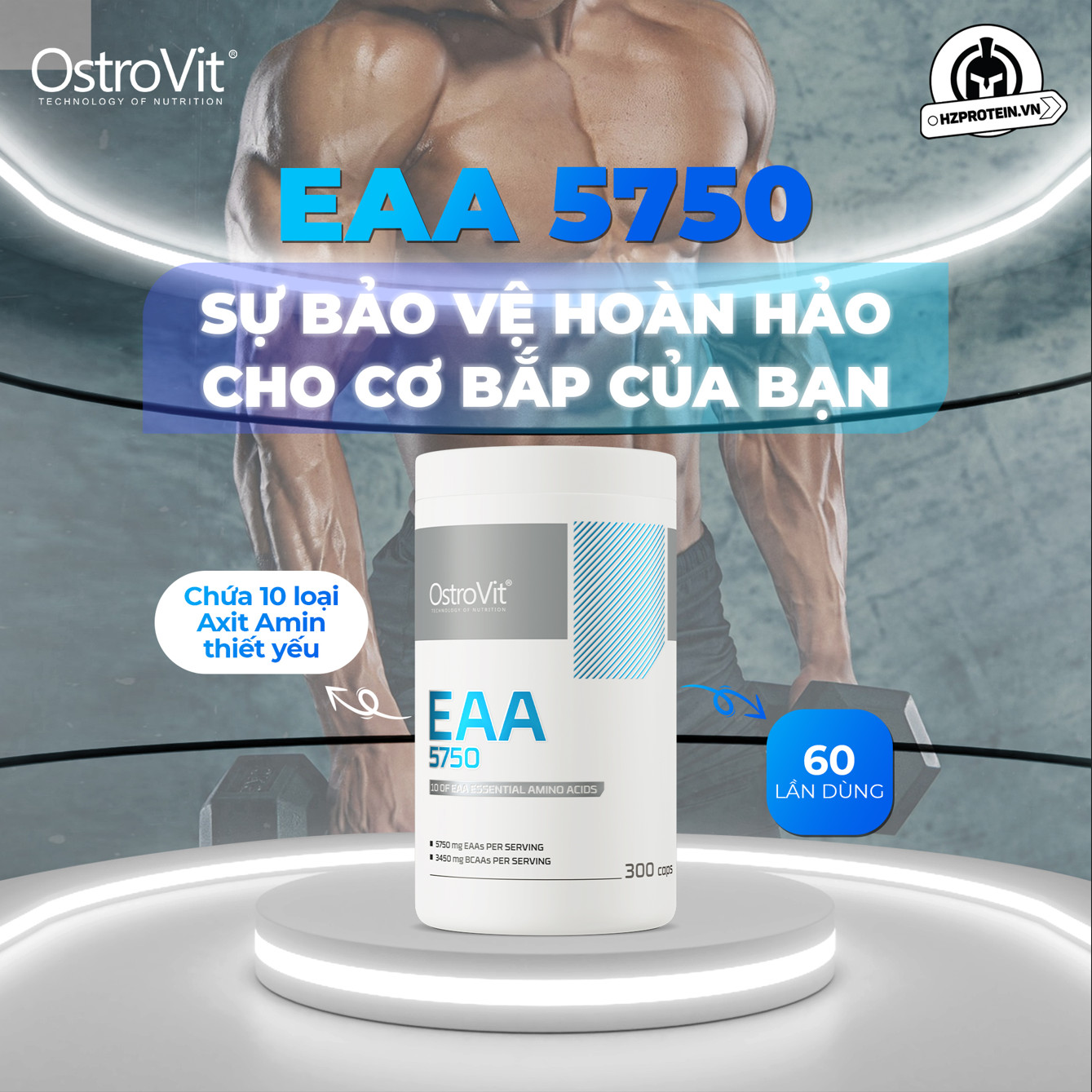 EAA là một phức hợp của các axit amin ngoại sinh và nội sinh. Nhiệm vụ chính của các axit amin EAA là bảo vệ cơ bắp chống lại sự dị hóa và cải thiện khả năng tái tạo của chúng sau khi tập luyện. EAA 1150 Ostrovit chứa các axit amin: BCAA (L-leucine, L-valine, L-isoleucine), L-lysine, L-threonine, L-phenylalanine, L-methionine, L-arginine, L-histidine, L-tryptophan.