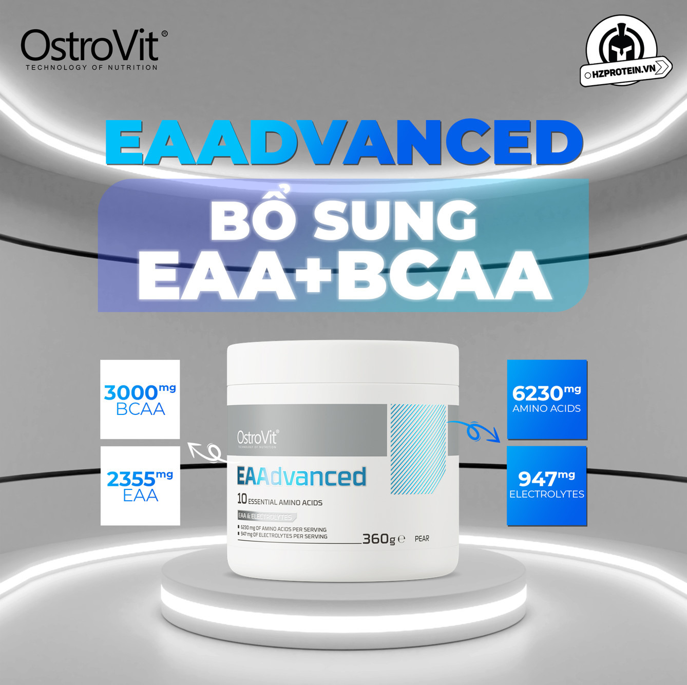 OstroVit EAAdvanced 360g là thực phẩm bổ sung chế độ ăn uống dạng bột chất lượng cao có ba hương vị trái cây thơm ngon. Là sự kết hợp của axit amin EAA và BCAA với khoáng chất. Sản phẩm được phát triển với các thành phần chất lượng cao nhất cho tất cả những ai hoạt động thể chất, những người cần bổ sung hàm lượng axit amin và chất điện giải trong chế độ ăn uống hàng ngày của họ ,và do đó hỗ trợ quá trình tái tạo sau khi tập luyện nặng và cường độ cao.