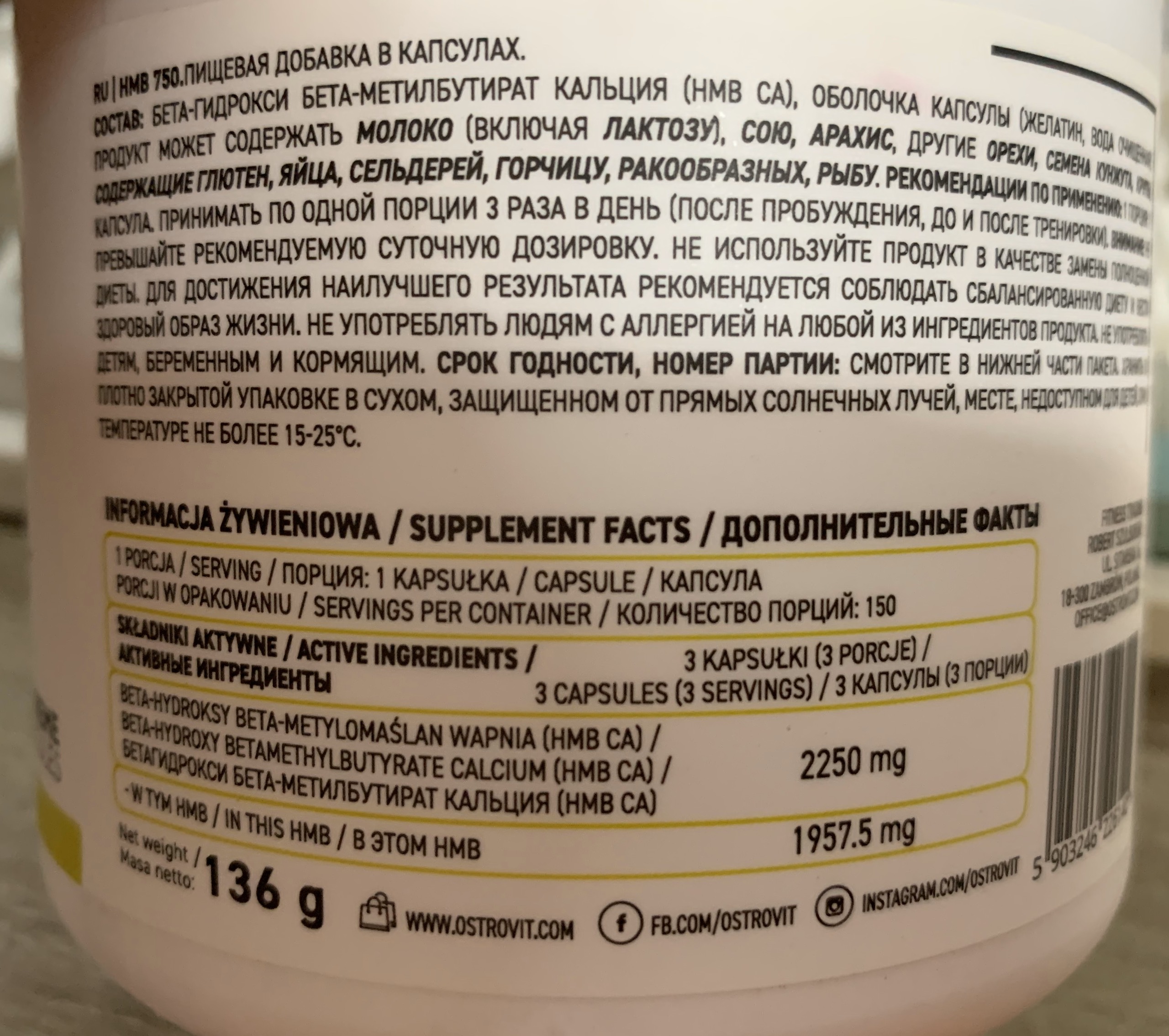 OstroVit HMB 750 – beta-hydroxy beta-methyl butyrate