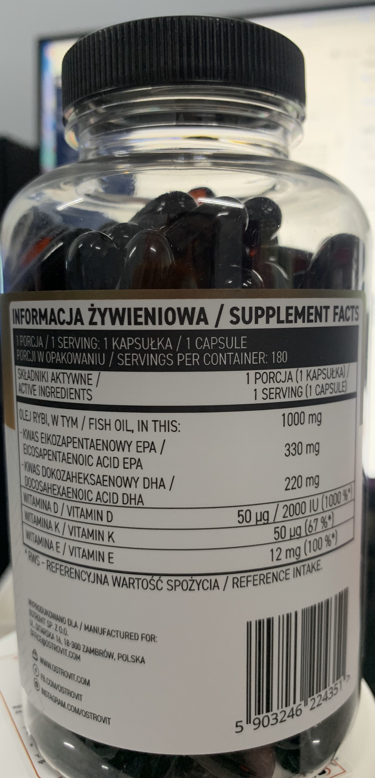 | Thành phần chính | Ostrovit Omega 3 D3+K2 |