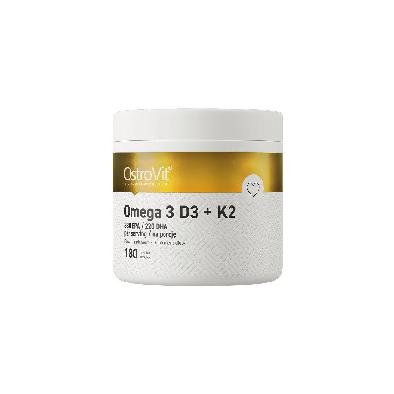 Ostrovit Omega3 D3 K2 là sản phẩm bổ sung kết hợp 3 trong 1 từ thương hiệu Ostrovit. Sản phẩm nổi lên hot hàng đầu trên thị trường hiện nay bởi cung cấp hàm lượng lớn axit béo có lợi Omega-3 trong đó có DHA và EPA rất cần thiết cho cơ thể và Vitamin D3 + K2 rất tốt cho sức khỏe của xương khớp.