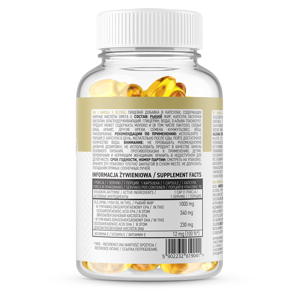 OstroVit Omega 3 ULTRA chứa axit béo omega-3 hỗ trợ công việc hoạt động của tim và não cũng như củng cố các mạch máu. EPA và DHA ảnh hưởng tích cực đến các chức năng tinh thần, cải thiện trí nhớ và tập trung.