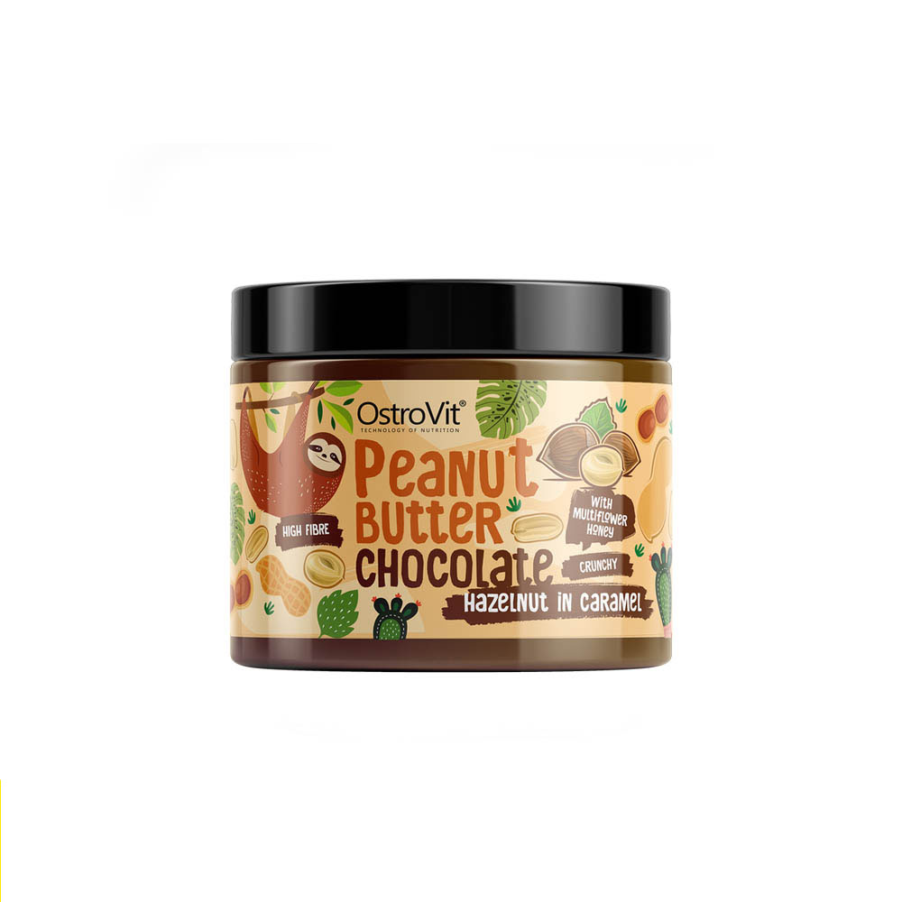 Là một loại bơ đậu phộng ngon và độc đáo dành cho bánh mì, bánh kếp và món tráng miệng. Bơ đậu phộng của chúng tôi là sự kết hợp của đậu phộng rang, hạt phỉ caramen, mật ong hoa sữa, dầu dừa MCT, ca cao, hương thơm sô cô la tự nhiên và muối giúp sản phẩm có vị mặn độc đáo. Bạn đang tìm kiếm một loại bơ đậu phộng hạt tốt cho sức khỏe, thơm ngon và không chứa chất bảo quản? OstroVit Chocolate Peanut Butter + Caramelized Hazelnuts là sản phẩm dành cho bạn!