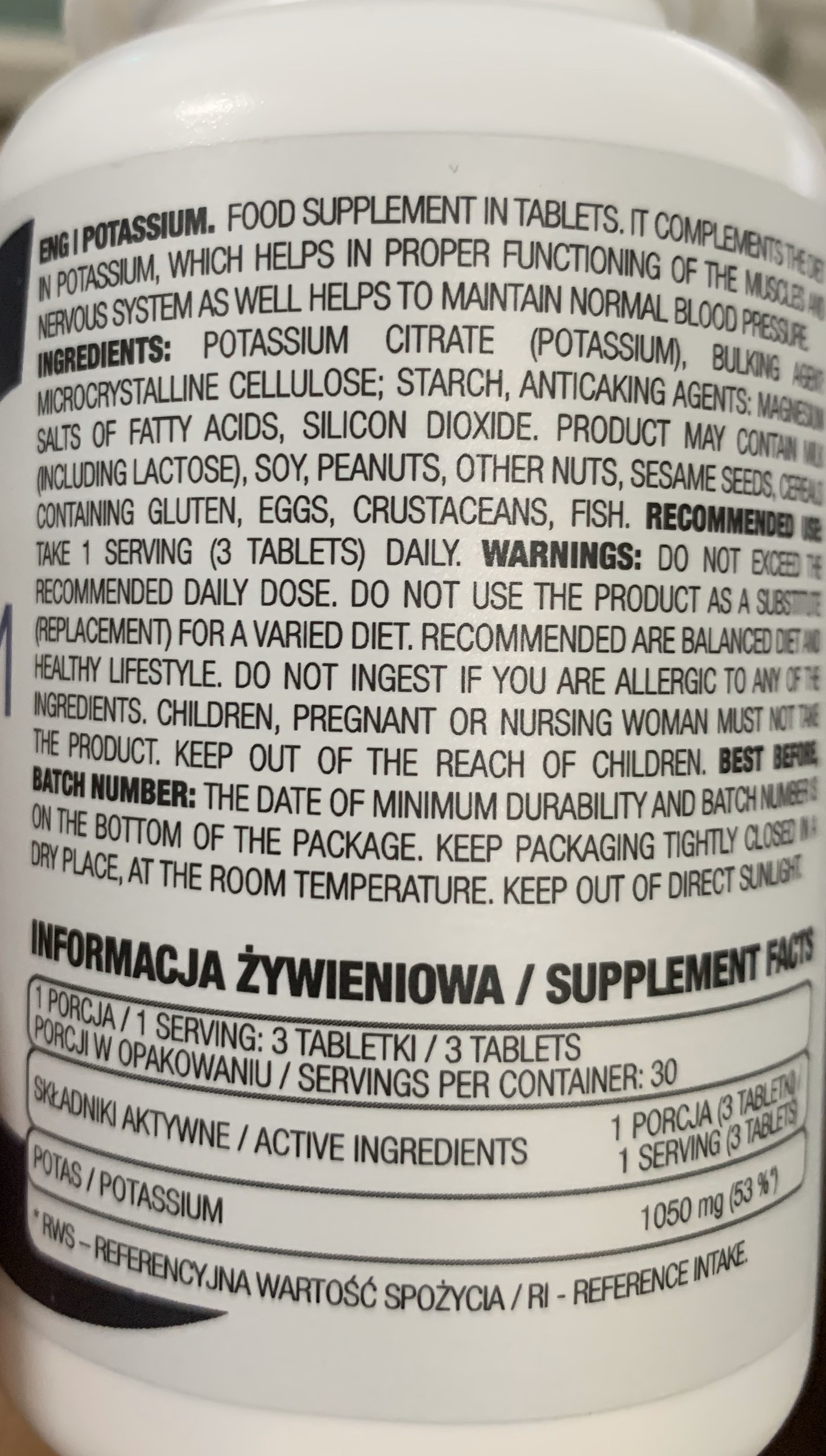 - Potassium 90 viên bổ sung lượng kali cần thiết cho cơ thể. Cơ thể thiếu hụt một lượng kali lớn, thực phẩm không bổ sung đủ. Lúc này cần đến sự trợ giúp của Potassium citrate. Ăn nhiều đồ đóng hộp cũng là nguyên nhân dẫn đến thiếu kali trong cơ thể. Kali là nguyên tố không thể thiếu, cần bổ sung đầy đủ lượng cơ thể cần để khỏe mạnh hơn mỗi ngày.