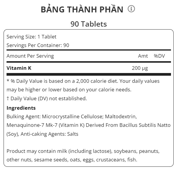 Nó chịu trách nhiệm vận chuyển canxi thích hợp từ máu đến mô xương, cho phép bạn duy trì xương khỏe mạnh. Vitamin K2 MK-7 là một dạng vitamin K2 được cơ thể chúng ta hấp thụ ở mức độ cao nhất. Nó được lấy từ một sản phẩm đậu nành lên men truyền thống của Nhật Bản là kết quả của quá trình lên men Bacillus subtilis natto.