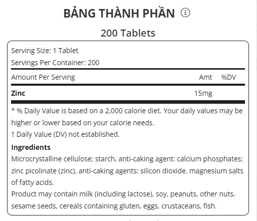 BẢNG THÀNH PHẦN SUPPLEMENT FACT