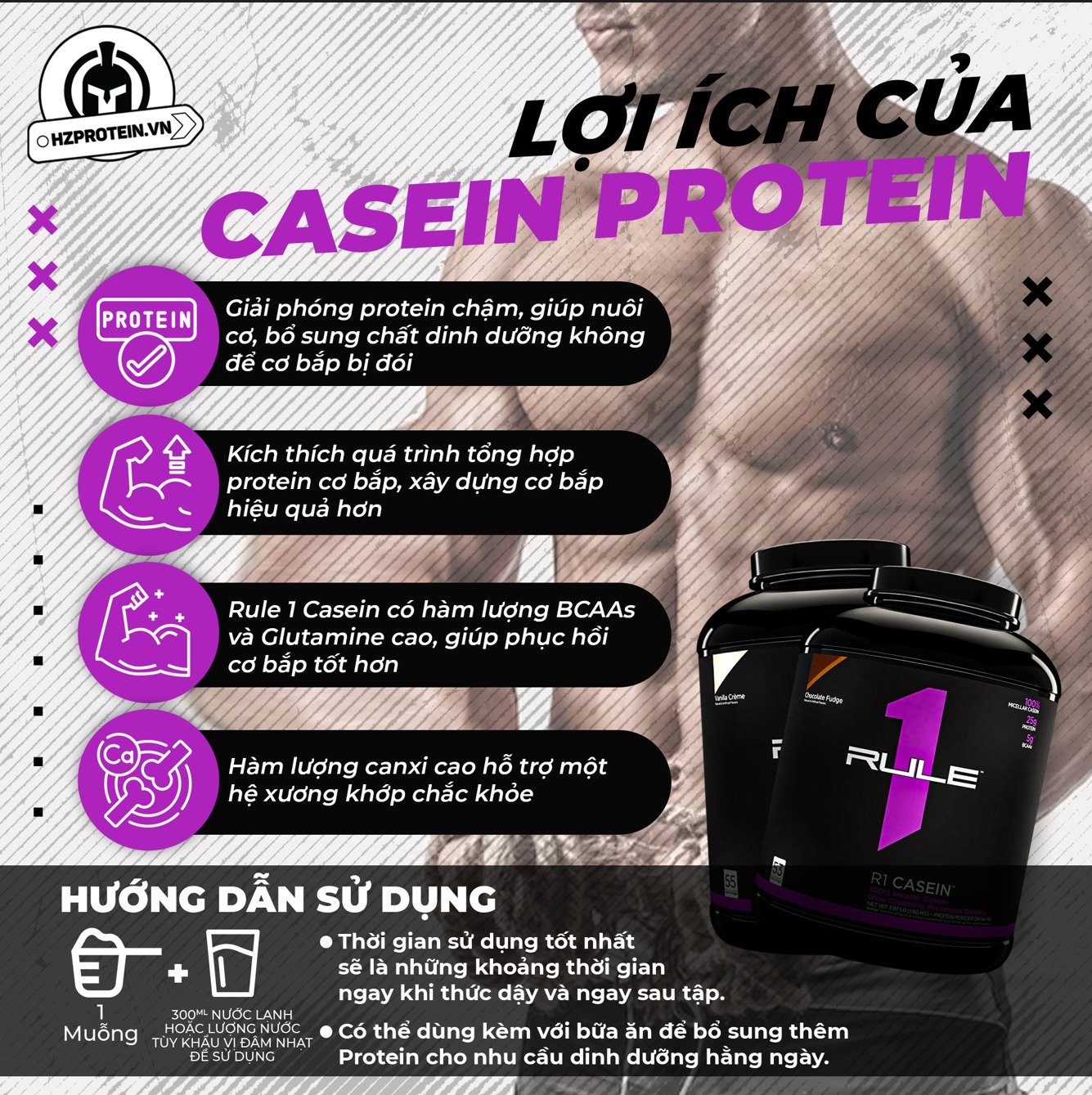 Rule 1 Casein là sản phẩm cung cấp nguồn Protein giải phóng chậm, dành riêng cho những người muốn bổ sung dưỡng chất này trong thời gian dài, vào ban đêm khi ngủ. Loại casein này chủ yếu được các Gymer sử dụng để tiếp tục quá trình tổng hợp cơ bắp khi nghỉ ngơi nên Rule 1 Casein thường được gọi là “protein dinh dưỡng nuôi cơ ban đêm”.