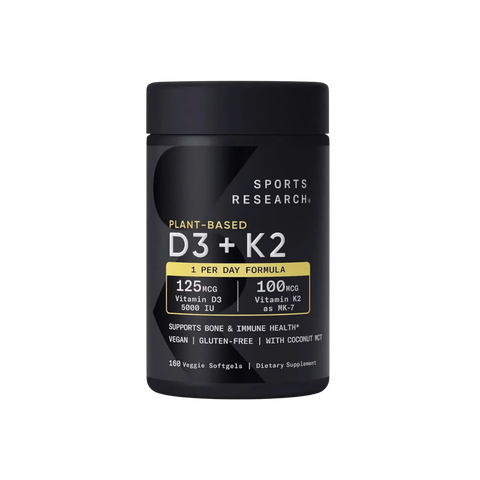 Giới thiệu Viên vitamin D3 K2 thuần chay Sports Research 160 viên của Mỹ Viên vitamin D3 K2 thuần chay Sports Research 160 viên là một sản phẩm bổ sung dinh dưỡng kết hợp vitamin D3 và K2, được sản xuất bởi thương hiệu Sports Research của Mỹ. Sản phẩm này được thiết kế đặc biệt cho người ăn chay (vegan) vì vitamin D3 có nguồn gốc từ địa y (lichen) và vitamin K2 (MK-7) được chiết xuất từ đậu gà lên men.