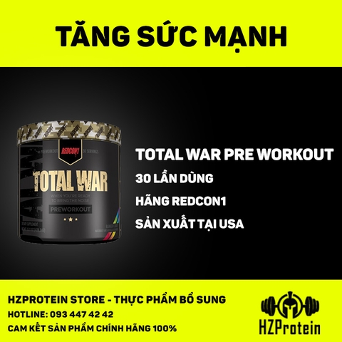 Total War của Redcon1 là một sản phẩm Pre-workout mà người luyện tập thể hình không thể bỏ qua. Cung cấp nguồn năng lượng dồi dào, Redcon1 Total War giúp bạn lấy lại nguồn sức mạnh cho bản thân, bất kể giờ tập của bạn là buổi sáng, giữa trưa hay buổi tối sau khi tan ca từ nơi làm việc về với một tâm trạng uể oải mệt mỏi.