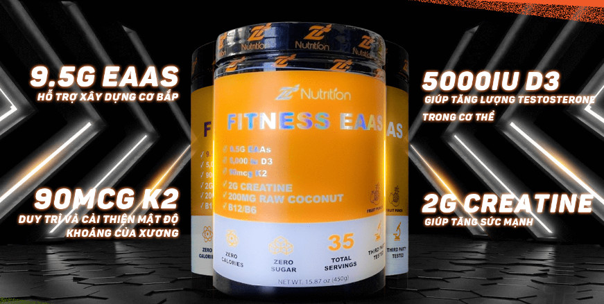 Sản phẩm EAAs có chứa Vitamin D3,K2 và Creatine là chưa từng có trước đây. Nên việc sử dụng Z Nutrition – Fitness EAAs là vô cùng tiện lợi và hiệu quả.