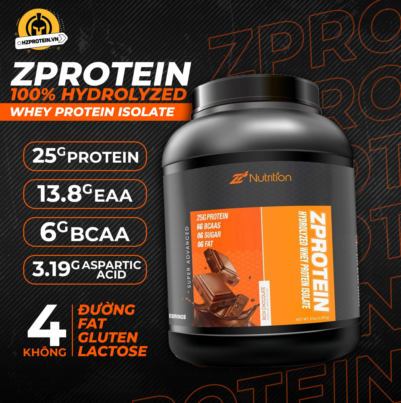 ZProtein 100% Hydrolyzed là sản phẩm whey thủy phân tinh khiết hàng đầu của thương hiệu Z NUTRITION với 100% thành phần Whey Hydrolyzed thủy phân hoàn toàn cao cấp nhất hiện nay: